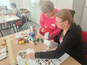 Rdeča nit LTT-ja so bile praktične delavnice, na katerih smo izobraževalci odraslih, vzgojitelji in mentorji upokojenci razvijali didaktične pripomočke.
