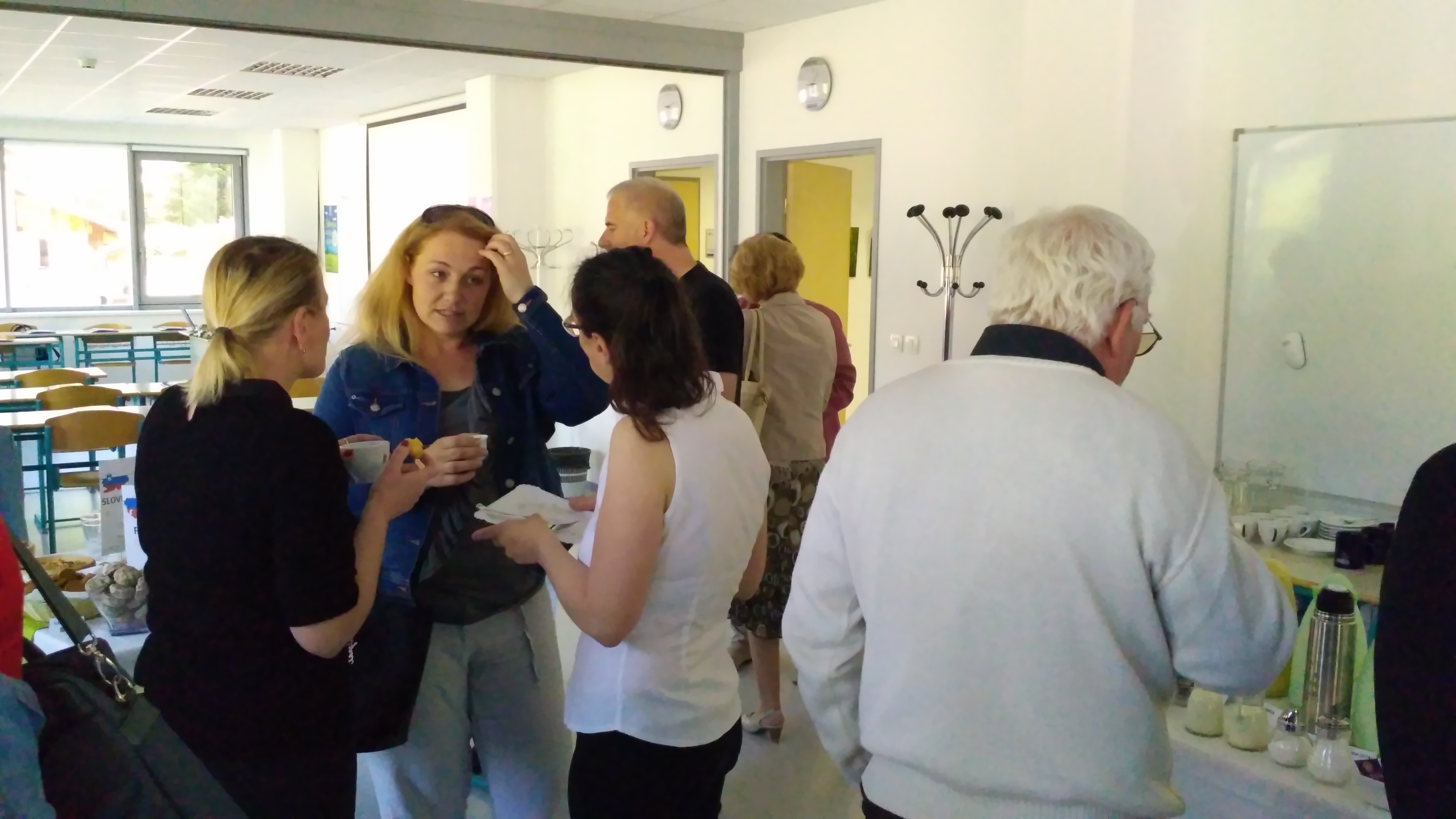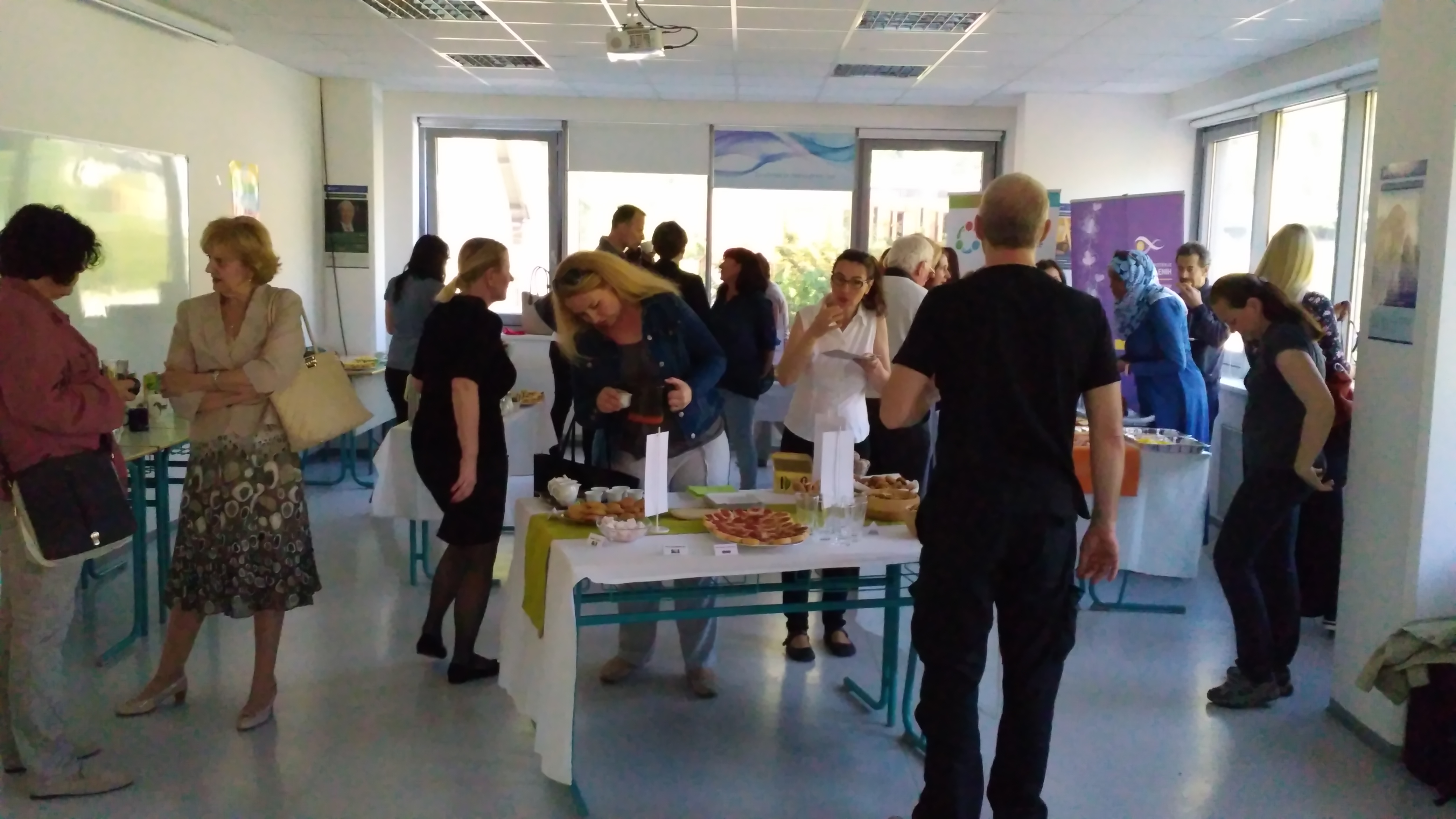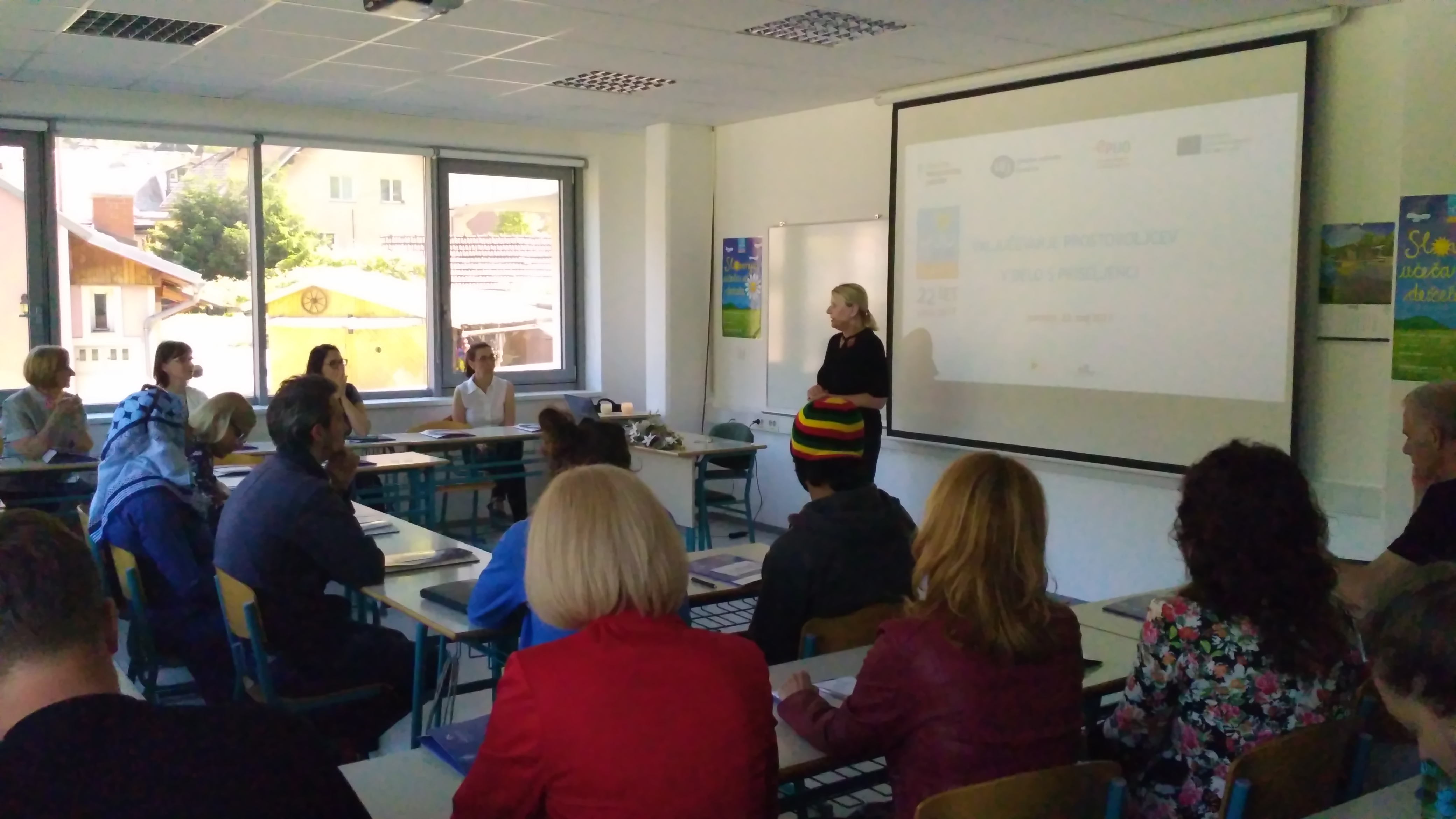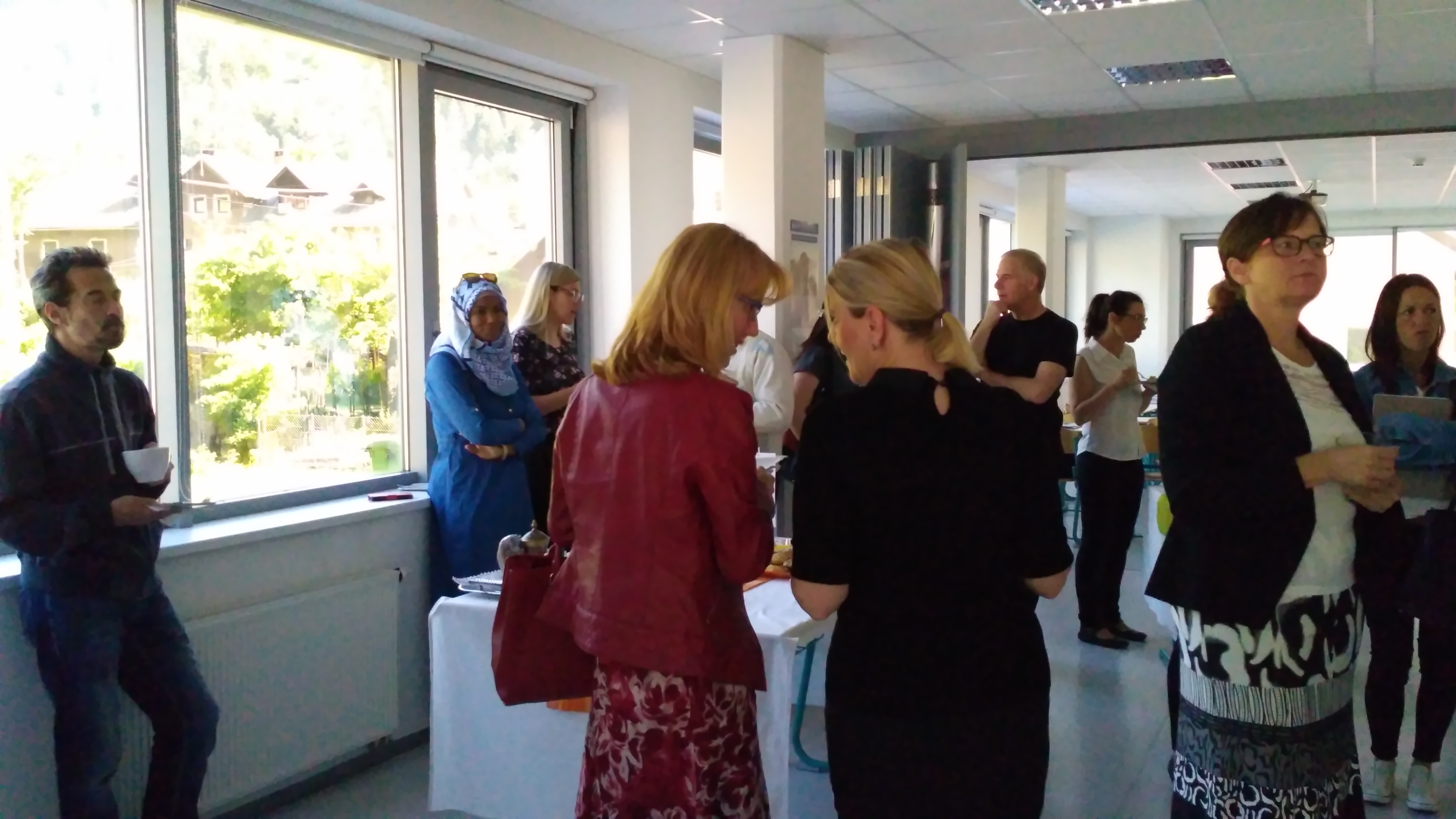 Strokovni dogodek smo začeli z multikulturnim zajtrkom, uvodno besedo je imela direktorica LUJ, mag. Maja Radinovič Hajdič, ki je predstavila tudi projekt Podari uro. Sledile so predstavitve Tine Strnad iz RIC Novo mesto, Arneta Zupančiča in Socialnega centra za migrante Second Home in Jake Matičiča iz Slovenske filantropije.