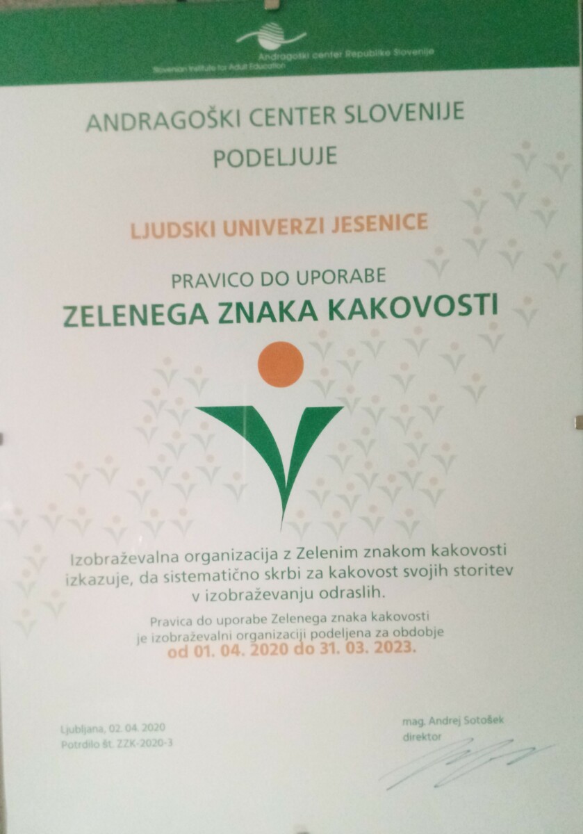 za uporabnost znanj in za zadovoljstvo naših udeležencev in partnerjev.