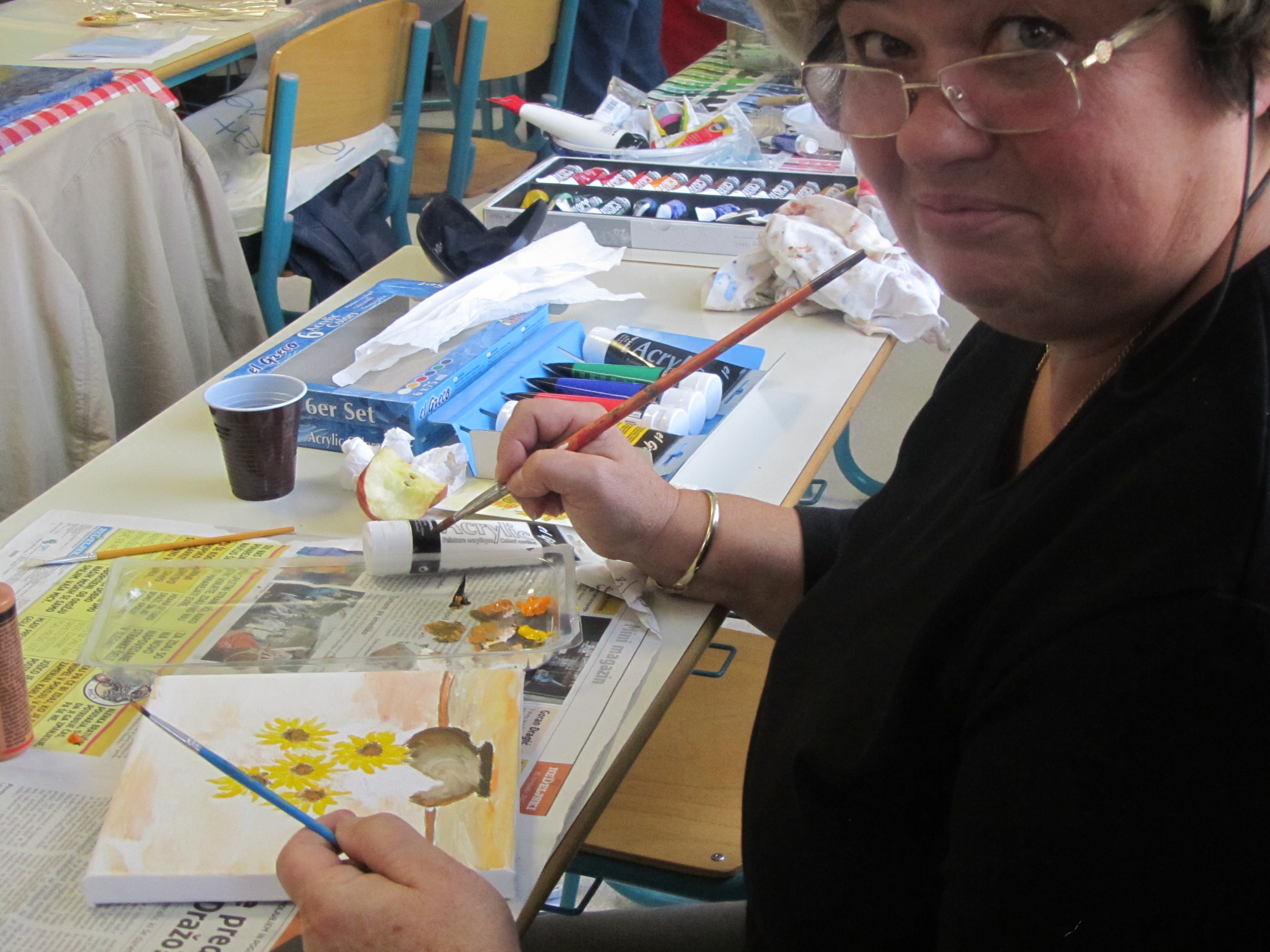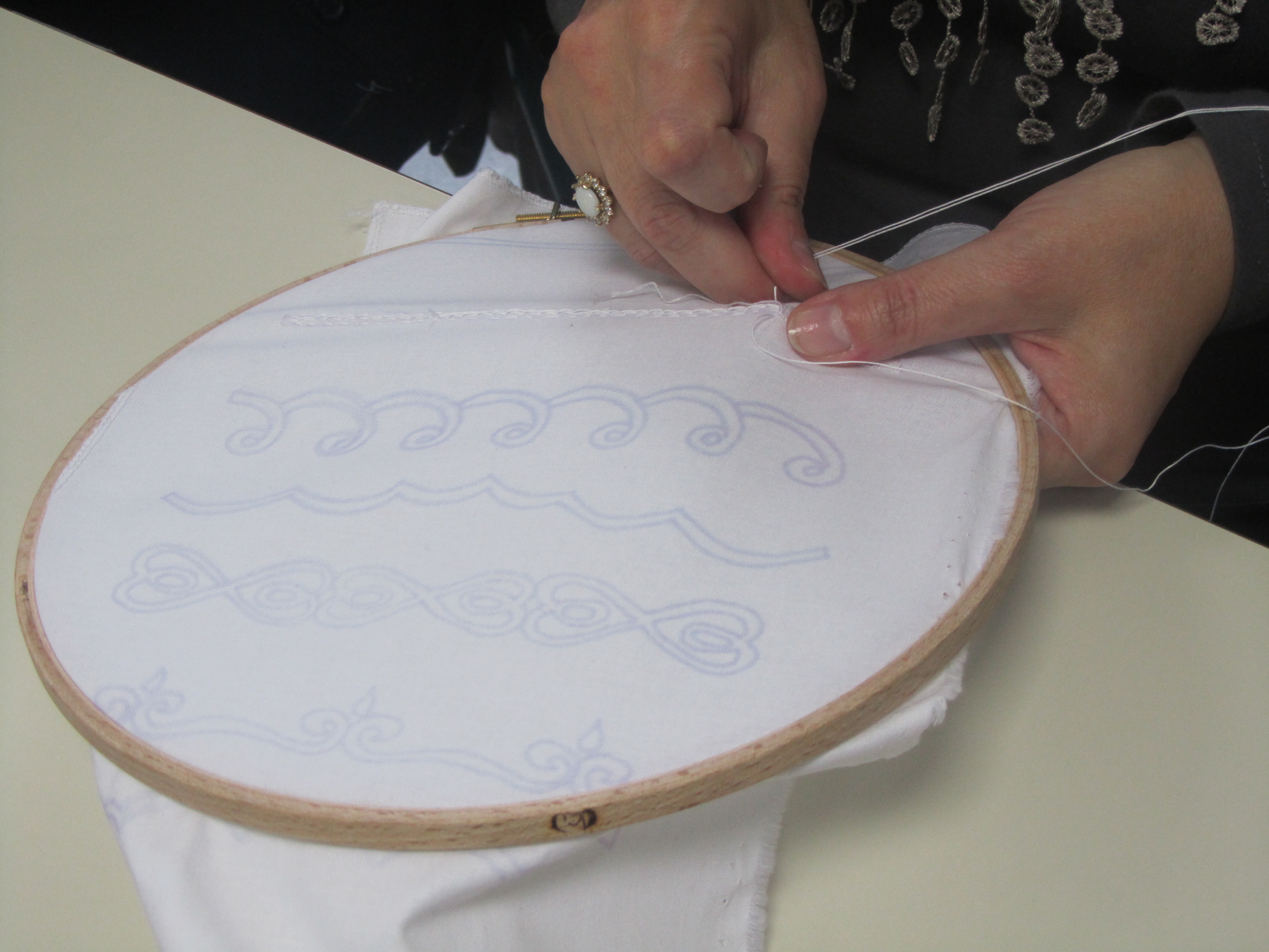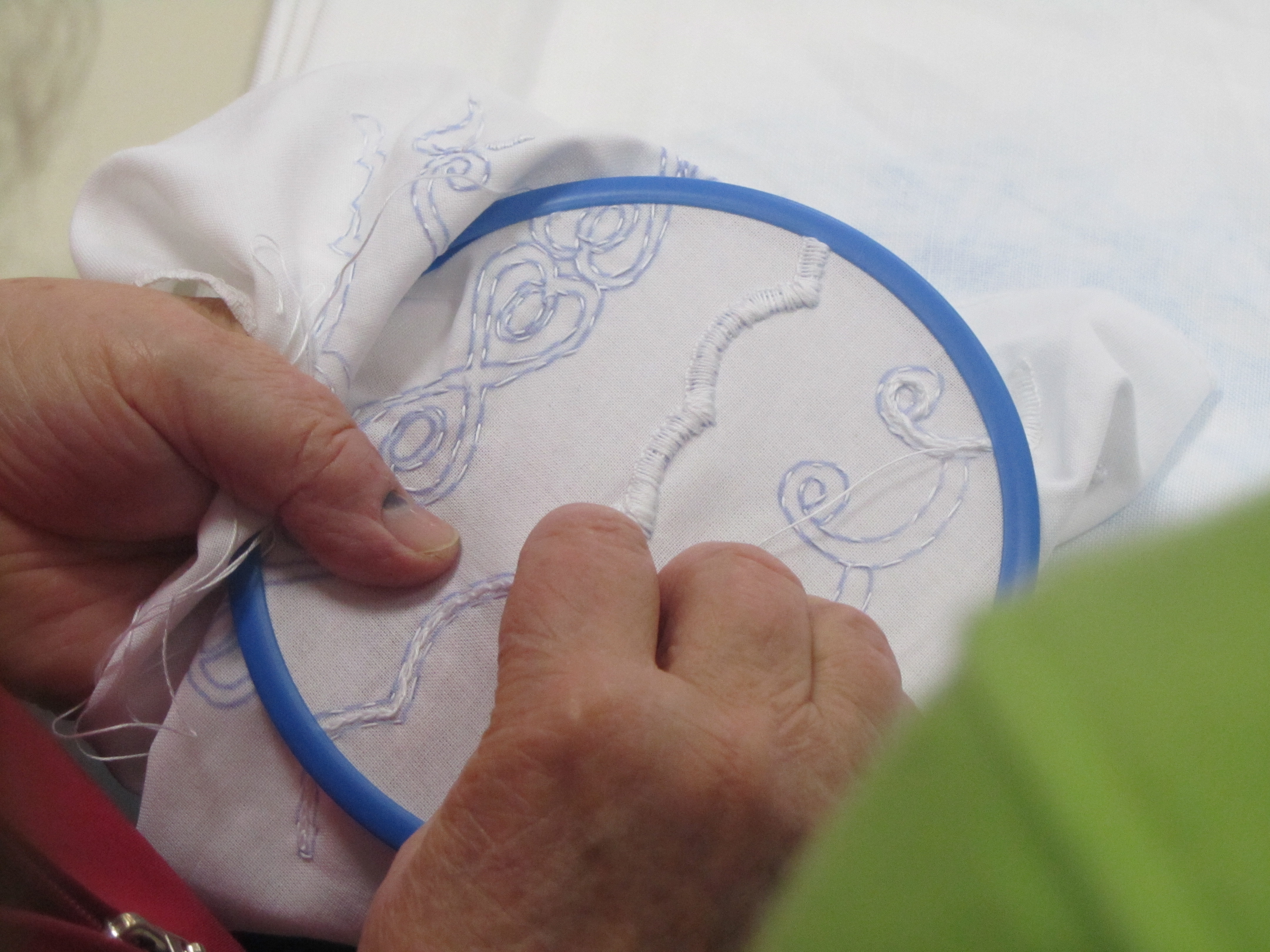 Kreativni utrinki sekcije kreativnost Univerze za tretje življenjsko obdobje in tehnika vezenja beli vez na Točki VŽU.