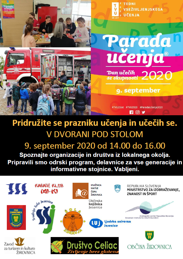 Parado učenja bomo zahvaljujoč podpori Ministrstva za izobraževanje, znanost in šport ter treh občin, kot že nekaj let organizirali na treh lokacijah: