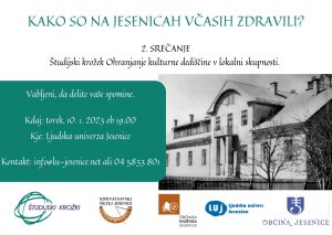 V sodelovanju z Občinsko knjižnico Jesenice in Gornjesavskim muzejem Jesenice organiziramo drugo srečanje študijskega krožka KAKO SO NA JESENICAH VČASIH ZDRAVILI?