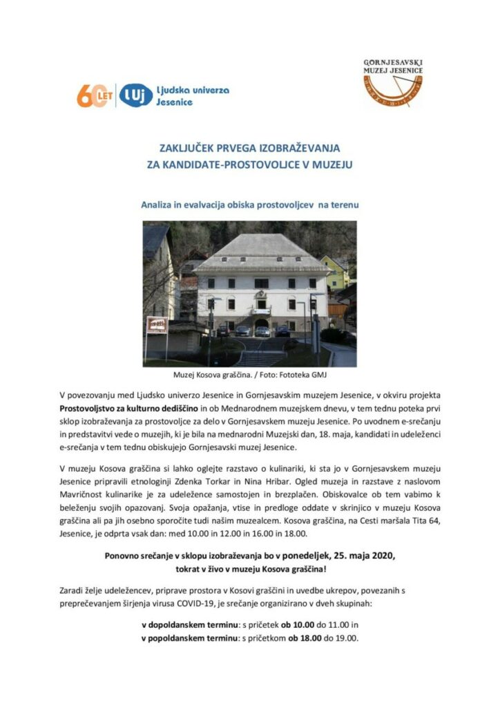 Zaključek prvega izobraževanja za kandidate- prostovoljce v muzeju