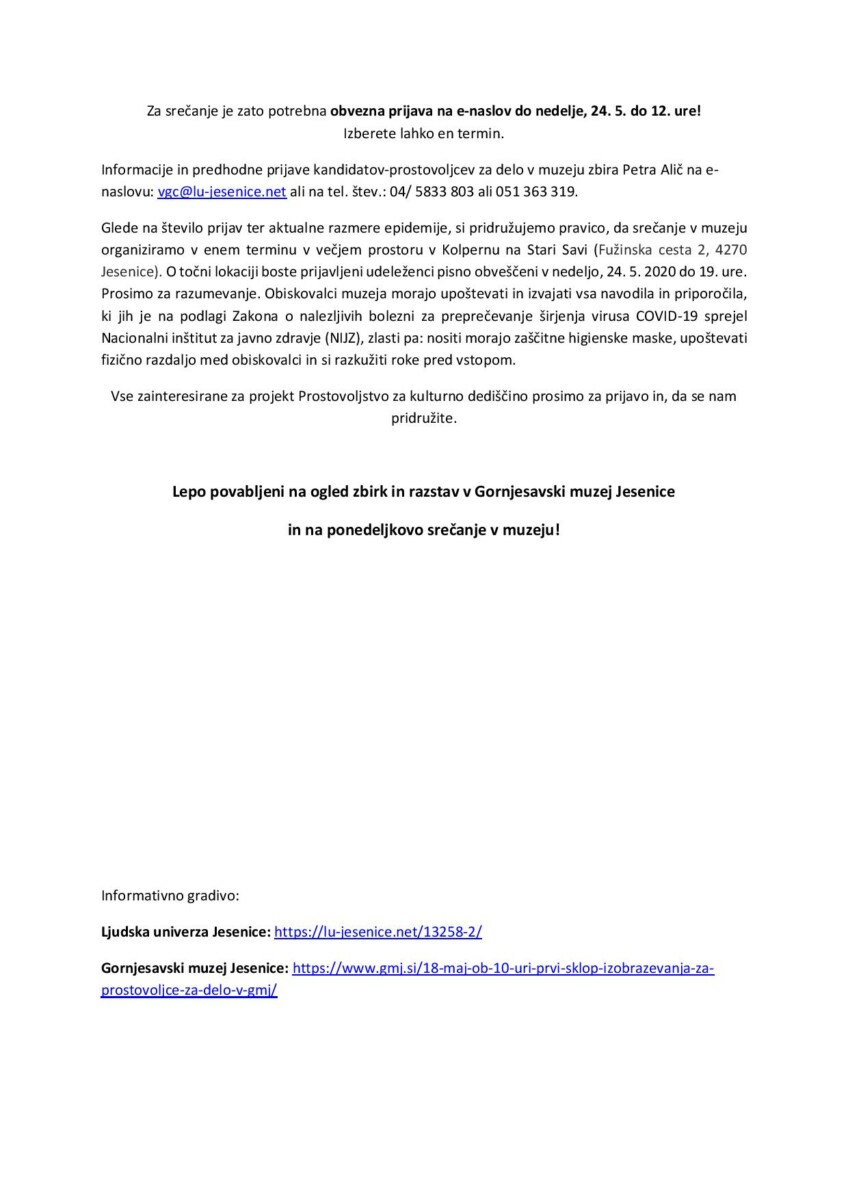 Medgeneracijski centri – izobraževanje prostovoljcev (Občina Bohinj)