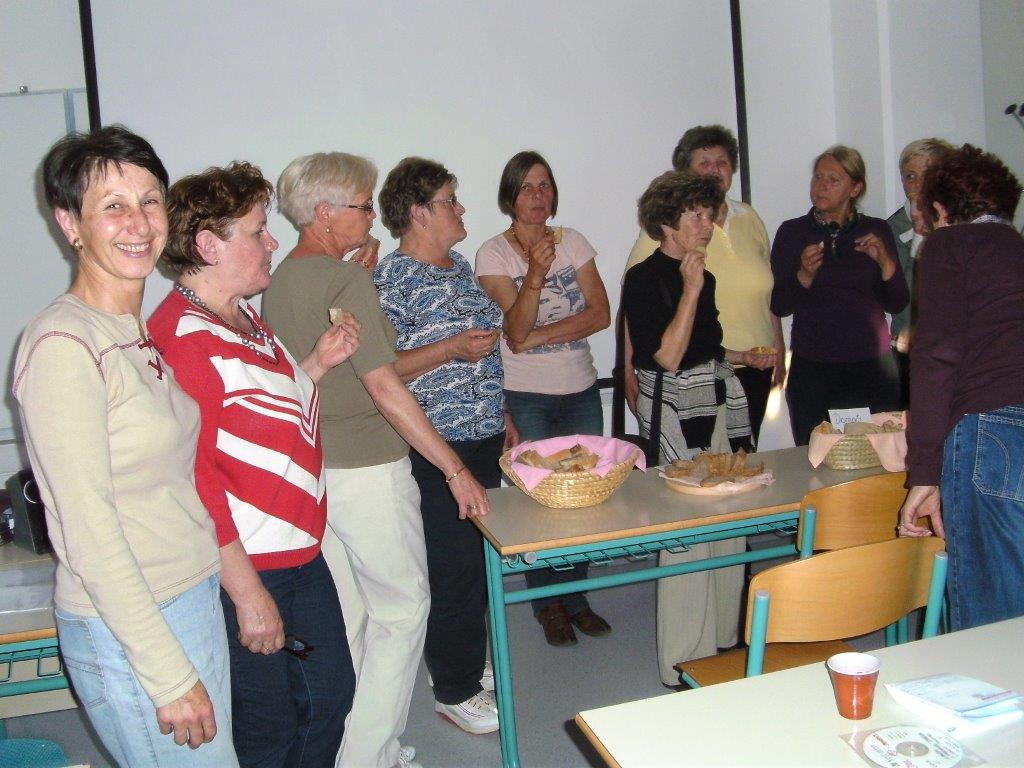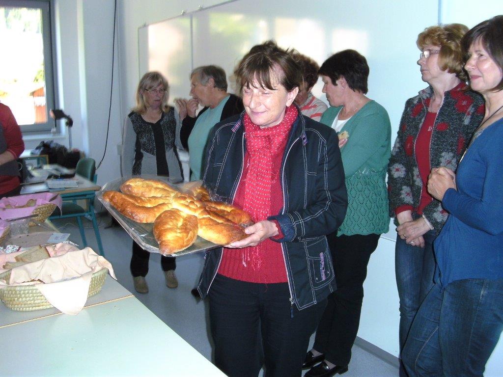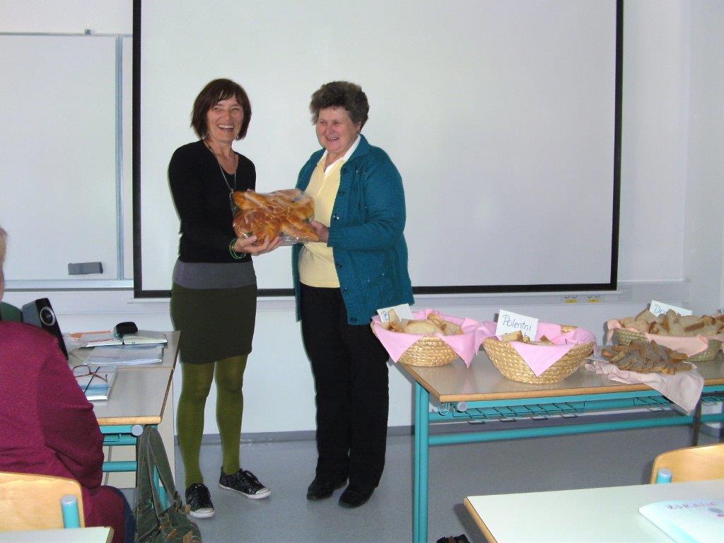 Vsestranska udeleženka Univerze za tretje življenjsko obdobje, ga. Violeta Smolej, je na zadnjem srečanju predstavila peko kruha v krušni peči in za pokušino prinesla več različnih vrst kruha. Enega v obliki narcise, simbola Jesenic.