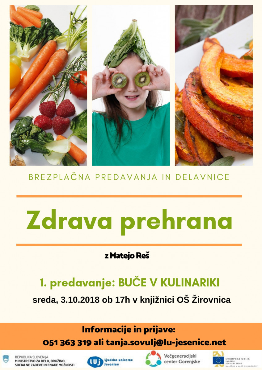 Soavtorica knjige Čarobni svet buč Mateja Reš nas bo popeljala v svet jedilnih buč. Spoznali bomo sorte buč, ugotovili, kako vemo, katere so jedilne in katere okrasne in seveda izvedeli, za kaj so koristne, kako jih shranjevati in čim okusneje vpletati v jedi. Spoznali bomo, katera buča sodi v katero jed, kako jih začiniti, na kakšne načine jih uporabiti, kako jih shranjevati, ter ugotovili, zakaj jih je smiselno uživati.. Če ste pridelali buče, pa ne veste, katere sorte so, jih lahko prinesete s seboj ali pokažete le sliko vaših pridelkov!